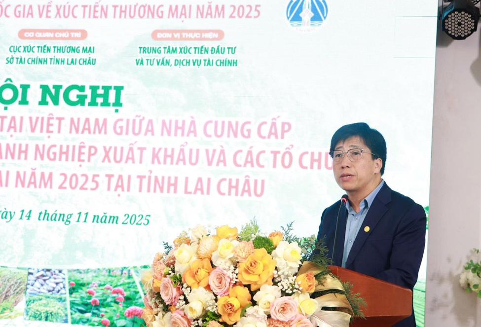 Chiều 14/11/2025, Sở Tài chính, Sở Công Thương phối hợp với Cục Xúc tiến thương mại và Sở Công Thương các tỉnh Tây Bắc tổ chức Hội nghị kết nối giao thương giữa nhà cung cấp khu vực Tây Bắc với các doanh nghiệp xuất khẩu và tổ chức xúc tiến thương mại năm 2025. Đây là hoạt động được tổ chức luân phiên theo Chương trình Xúc tiến thương mại quốc gia do tỉnh Lai Châu đăng cai tổ chức. Hội nghị có sự tham gia của 120 đại biểu đến từ Cục Xúc tiến Thương mại, Cục Quản lý Thị trường trong nước (Bộ Công Thương); đại diện Sở Công Thương và các tổ chức xúc tiến thương mại các tỉnh Điện Biên, Lào Cai, Sơn La, Ninh Bình, Phú Thọ, Hưng Yên, Hải Phòng, Quảng Ninh… cùng nhiều hiệp hội, doanh nghiệp, HTX trong tỉnh. Đặc biệt, nhiều tập đoàn và đơn vị phân phối lớn trong và ngoài nước tham dự như Central Retail, Saigon Co.op, IMEX NEWS, Thanh Sơn Thịnh Thế…